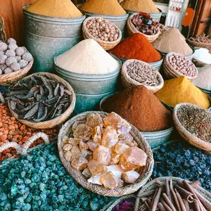 Das Nationalgericht Marokkos schlechthin ist Tajine, ein köstlicher Eintopf aus Fleisch und Gemüse. Der Name bezeichnet dabei nicht nur das Gericht, sondern auch die Art der Zubereitung. Der traditionelle Eintopf wird in einem spitz zulaufenden Tontopf vorbereitet und über längere Zeit geschmort. Die Rezepte reichen von unterschiedlichen Fleisch- bis zu Gemüse- oder Obstvariationen. Deshalb ist es nicht verwunderlich, dass Sie bei Ihrer Reise nach Marokko, das gleiche Gericht in unzähligen Variationen vorfinden werden. Gut zu wissen: Eine gute Tajine erkennt man daran, dass die Zubereitung 45-60 min dauert. In einigen Restaurants wird sogar daraufhin gewiesen, damit sich die Kunden nicht beschweren, wo das Essen bleibe. Serviert wird das Gericht im Unterteil der Tanjine, so kann das Essen noch am Platz vor sich hin bruzeln und ist garantiert warm!